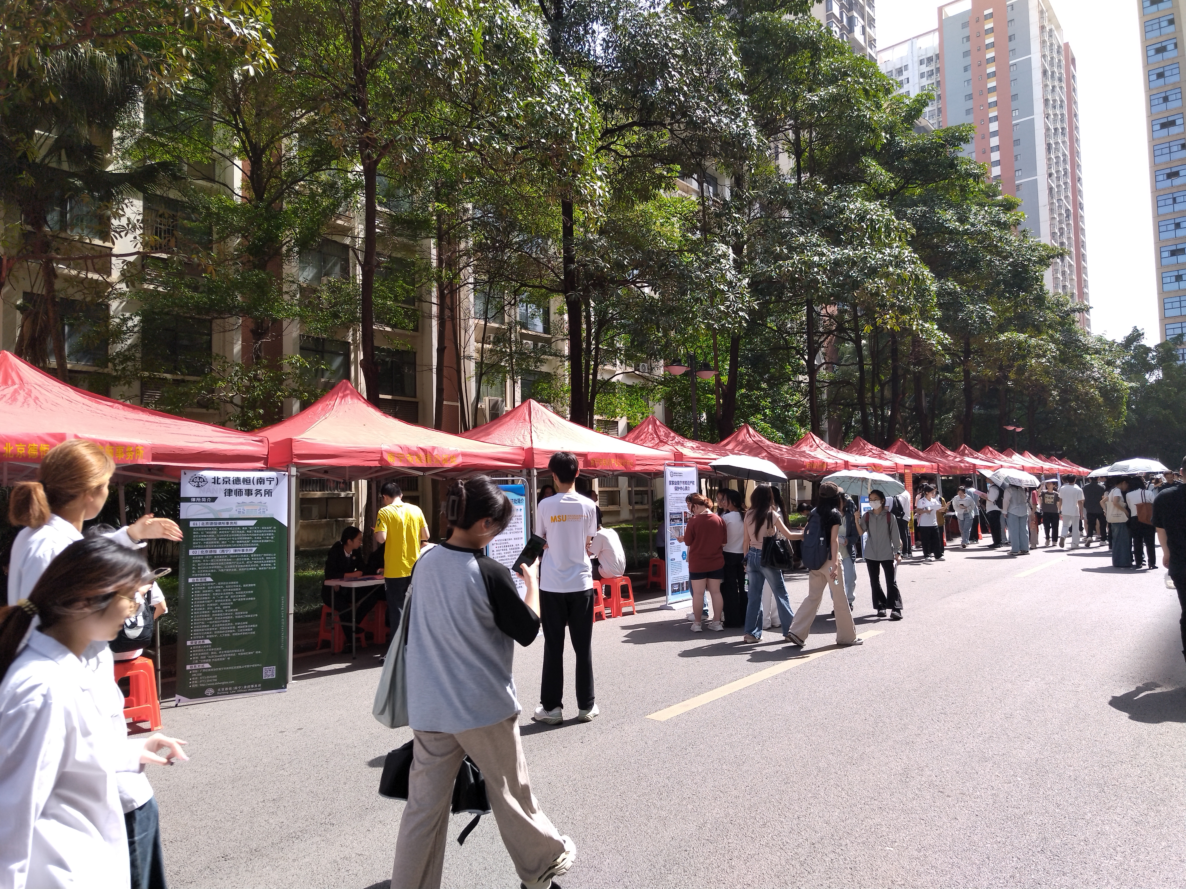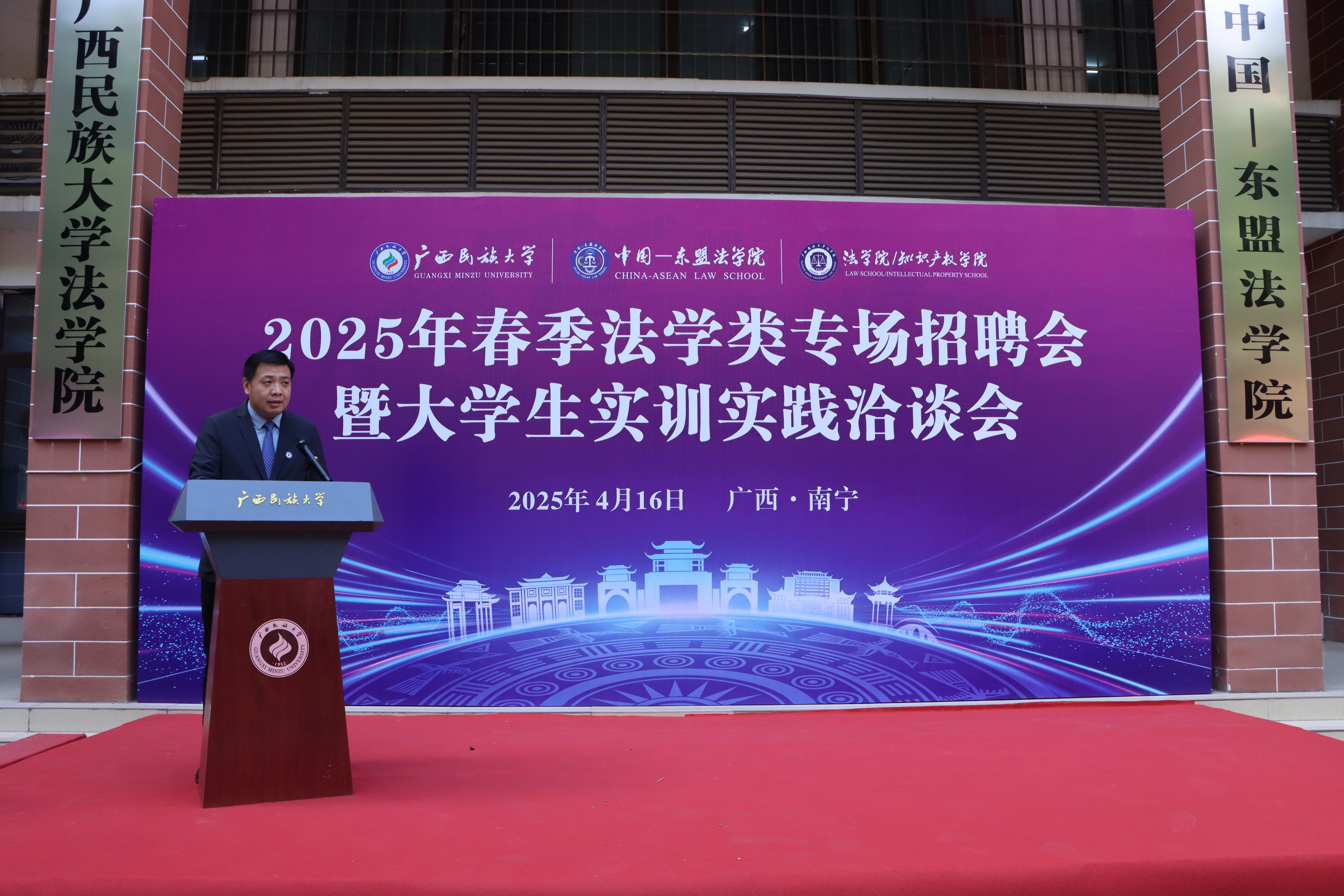 4月16日,广西民族大学中国—东盟betway必威西汉姆联官网/betway必威西汉姆联官网/知识产权学院2025年春季法学类专场招聘会暨大学生实训实践洽谈会在思源湖校区尚法楼前举行启动式,共有来自区内外80余家单位提供1000多个就业岗位和实习实训岗位,涵盖政法部门、法律服务机构、企业等用人单位,吸引校内外2000多名学生参加。