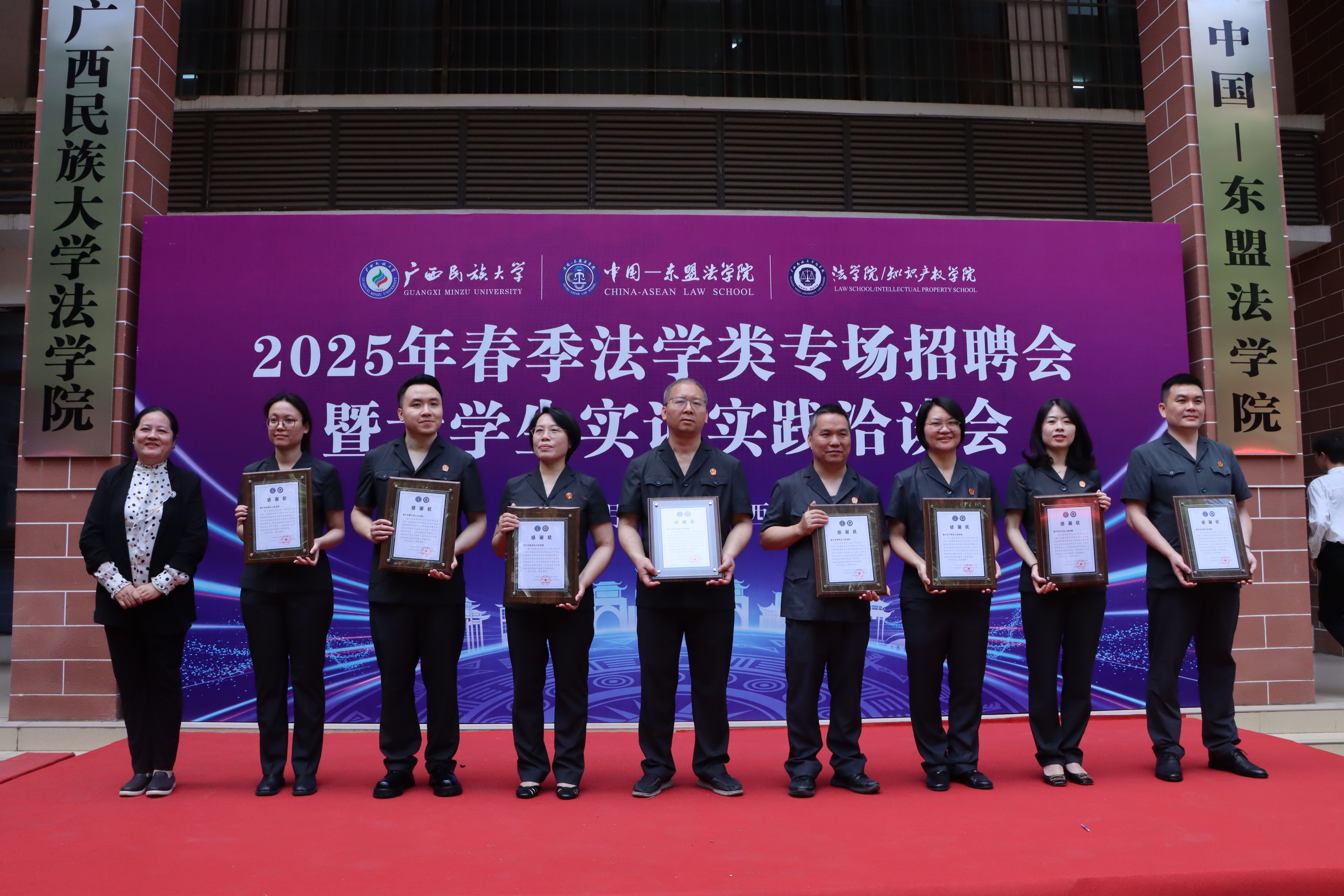 启动仪式上,三位来自不同法律实务部门的专家代表,就校企协同育人这一主题分享宝贵经验。随后,学院为长期以来支持学院工作的合作单位颁发首批广西民族大学中国—东盟betway必威西汉姆联官网感谢状。接着,学院开展新一轮“广西民族大学实践教育基地”授牌工作,为41家单位现场授牌。启动仪式由广西民族大学betway必威西汉姆联官网党委副书记高文涛主持。