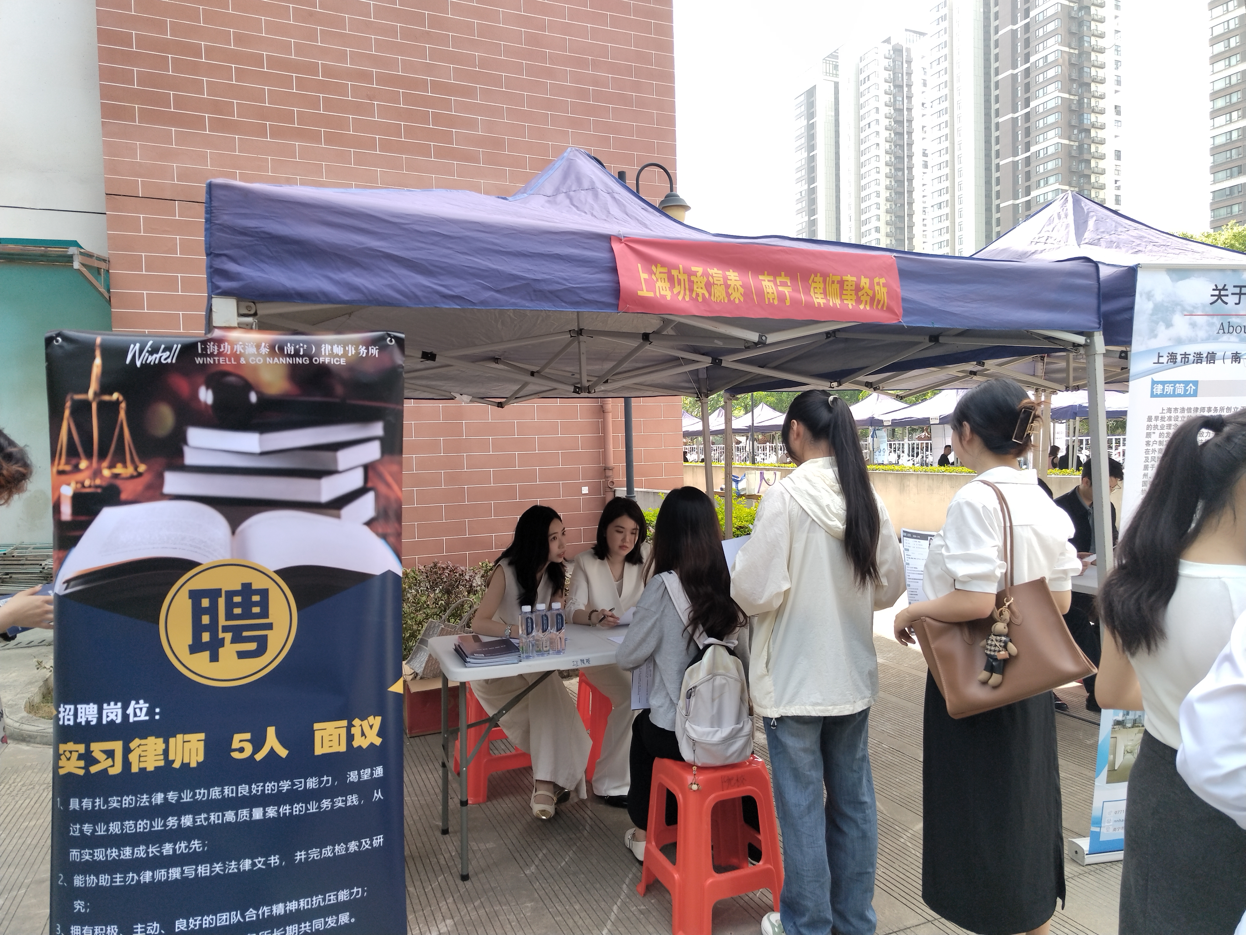 双选会当天,学院与南宁市知识产权保护中心举办合作交流座谈会,上海功承瀛泰(南宁)律师事务所、北京市盈科(南宁)律师事务所等单位向同学们进行招聘宣讲。此次双选会为毕业生与用人单位搭建了沟通桥梁,进一步加强了学校与用人单位的合作,对推动2025届毕业生实现高质量和更充分就业具有积极意义。(初审:康佳威 复审:高文涛 终审:陈星)