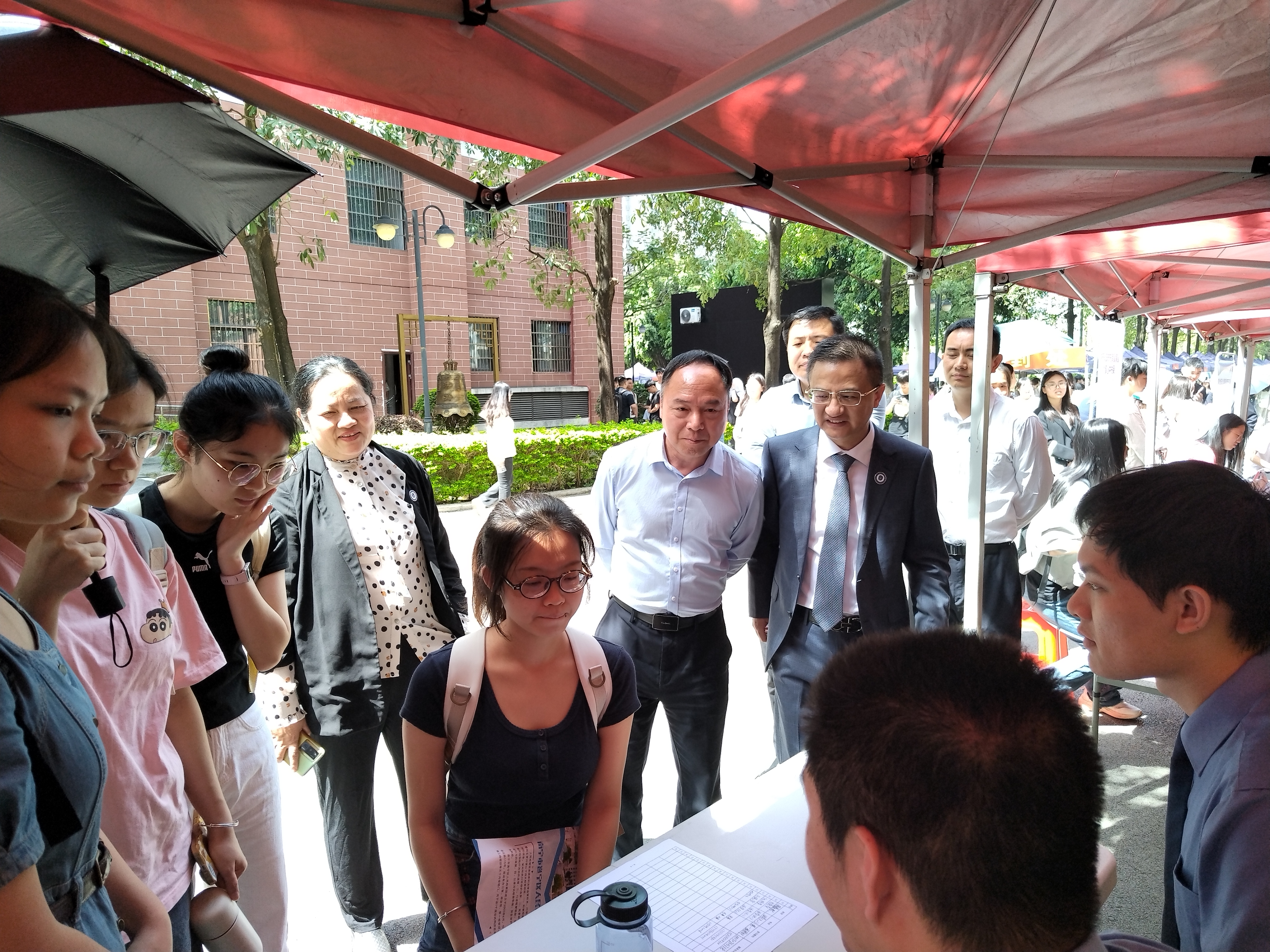 广西民族大学党委常委、副校长、中国—东盟betway必威西汉姆联官网院长何立荣亲临双选会现场指导,就企业的用人需求和对学校人才培养的建议与企业单位交流,并深入毕业生中了解他们的求职进展,鼓励毕业生树立正确的就业观,积极调整就业心态,拓宽就业视野。