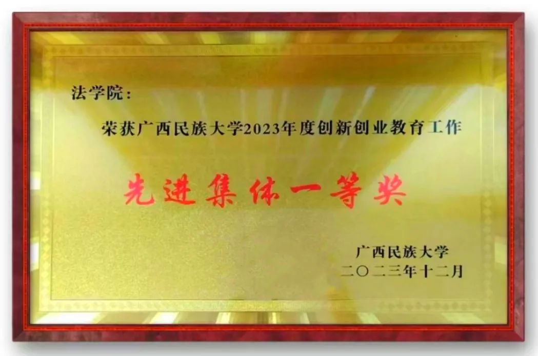 2023年,betway必威西汉姆联官网围绕立德树人根本任务,敢闯敢创、善作善成。betway必威西汉姆联官网在学校党委和行政的正确领导与大力支持下,聚焦法学专业特色,坚持“以赛促学”的育人理念,以创新创业赛事为载体,以创新创业教育课程、师资队伍、实践孵化、资源平台为依托,积极开展创新创业类专题培训会和比赛,厚植创新创业文化。过去一年,我院教师团队精心致力于指导学生参加各类创新创业比赛,学生参赛热情高,“东盟法务官”团队获得中国国际大学生创新大赛(2023)全国决赛金奖、第十三届“挑战杯”中国大学生创业计划竞赛全国决赛铜奖、第九届中国国际“互联网+”大学生创新创业大赛广西赛区选拔赛金奖,“法润万疆”团队获得中国国际大学生创新大赛(2023)全国决赛铜奖、第九届中国国际“互联网+”大学生创新创业大赛广西赛区选拔赛金奖。